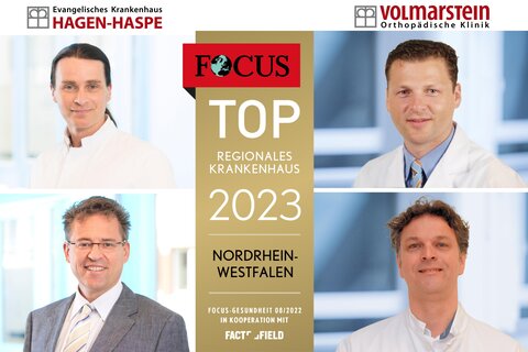Sie zählen zu den TOP-Medizinern Deutschlands: Experten der Ev. Stiftung Volmarstein wurden erneut vom unabhängigen Institut „FactField“ ausgezeichnet. Auch das Ev. Krankenhaus Hagen-Haspe gehört zu den besten regionales Krankenhäusern Deutschlands. Die Zeitschrift FOCUS gibt die Studie regelmäßig in Auftrag, die für viele Patientinnen und Patienten als Wegweiser gilt.