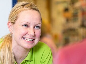 Kathrin Reinel ist unsere Fachpflegekraft, die geriatrische Patientinnen und Patienten währen ihres Krankenhausaufenthalts begleitet.